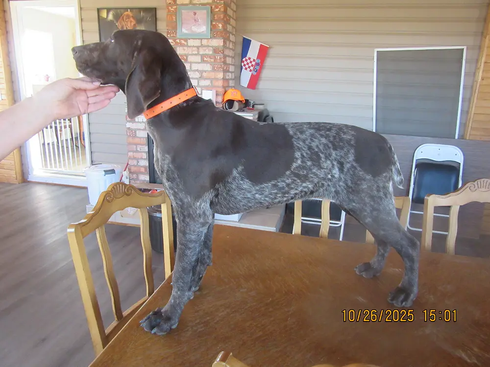 Each German Shorthaired Pointer puppy at Belmar Kennel, benefits from basic training as soon as they are ready. From potty training to basic and advanced commands, we ensure every dog meets milestones with care and attention.